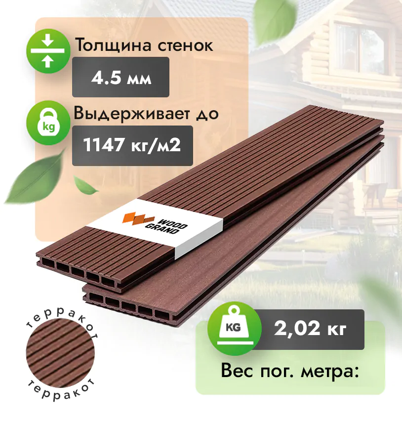 Благодаря брашировонной (матовой) поверхности дёкинг остается нескользким даже после дождя или мытья.